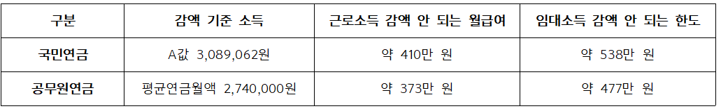 국민연금·공무원연금, 소득이 있으면 얼마나 줄어들까?(기준소득, 감액금액)