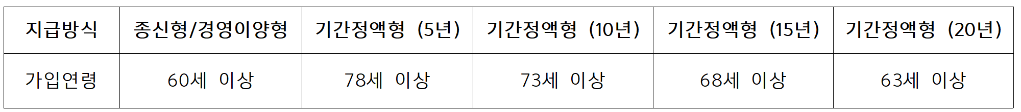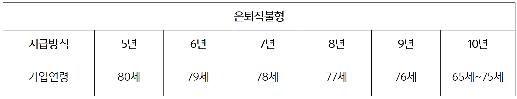 - 특정 상품(기간형, 은퇴직불형)은 연령 제한이 더 높을 수 있음