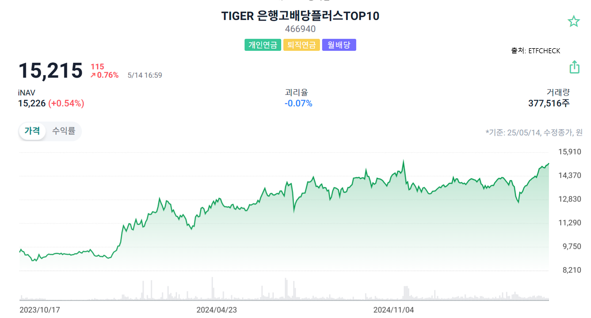 최고 배당률: TIGER 은행고배당플러스 TOP10 – 높은 배당률을 추구하는 투자자에게 추천.