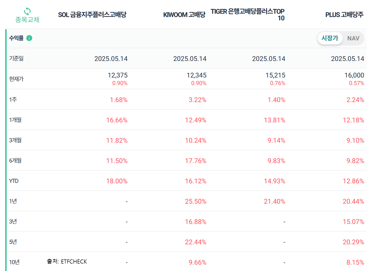 특징: 국내 주요 금융지주사를 중심으로 구성된 고배당 ETF로, 안정적인 배당 수익을 추구하는 투자자에게 적합