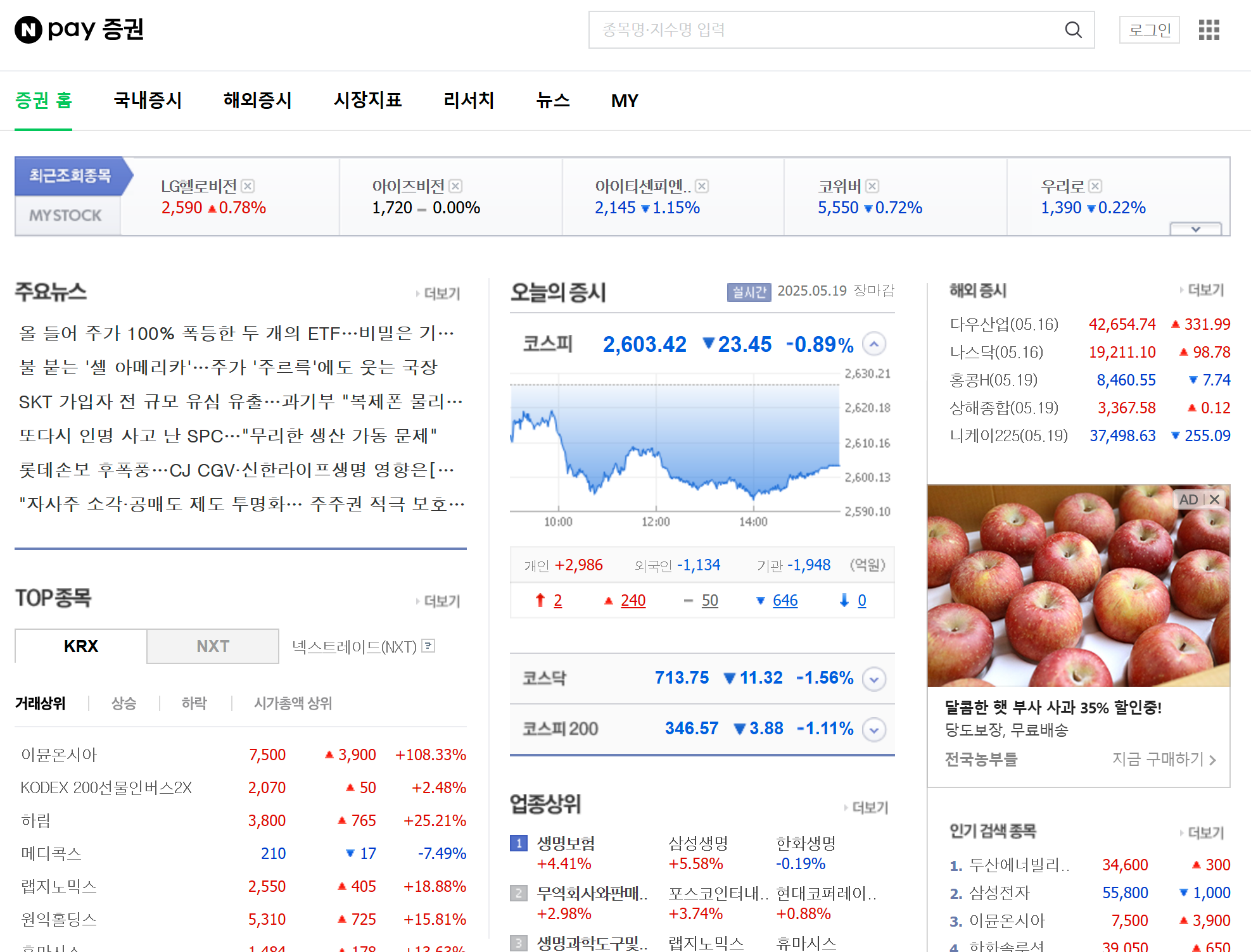 5. 네이버 페이 주식 (https://finance.naver.com)
