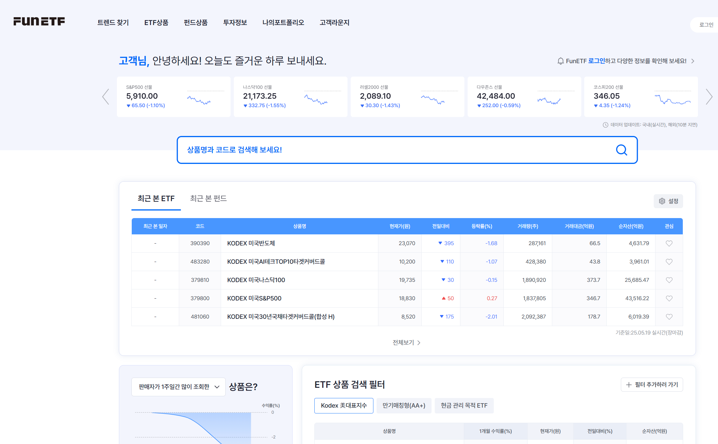 FunETF는 미국 선물지수와 ETF 시세를 실시간으로 확인할 수 있는 사이트로 해외 ETF 투자에 관심 있는 분들에게 추천하는데요.