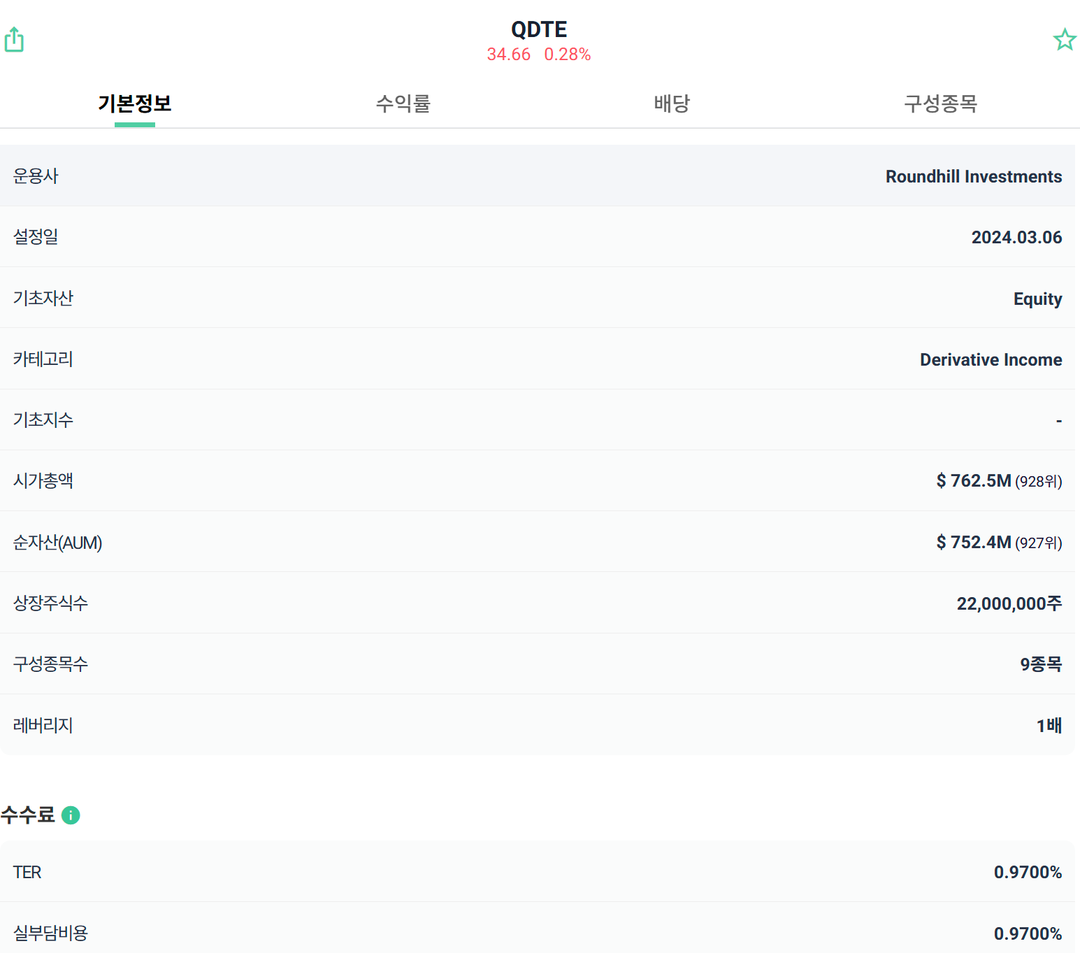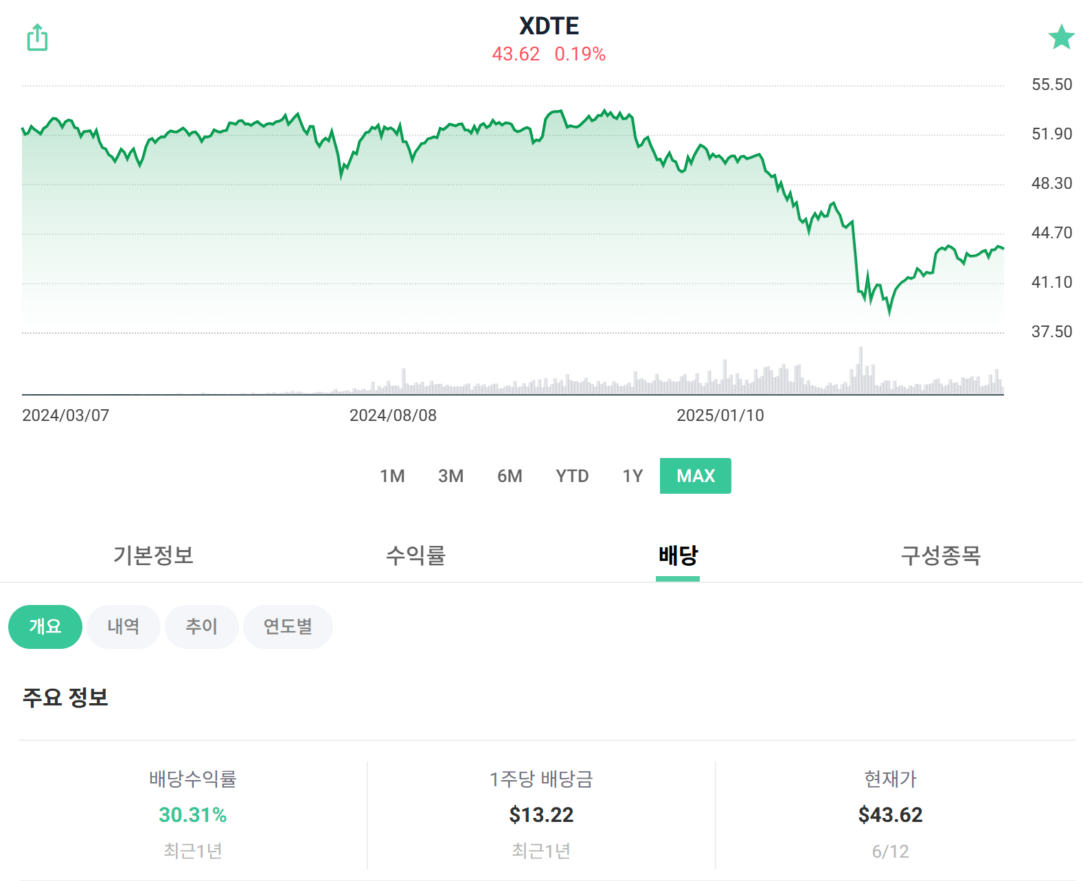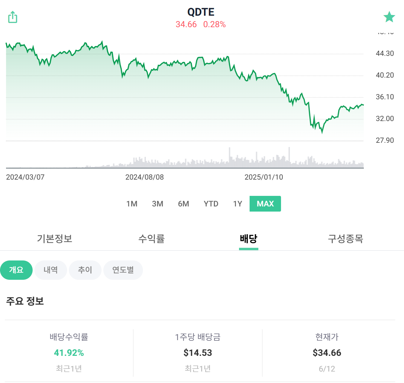 특징: QDTE와 전략은 유사하지만 SPY를 기반으로 하기 때문에 QQQ보다 시장 안정성이 높고 변동성은 낮습니다. 따라서 조금 더 보수적인 성향의 투자자에게 적합할 수 있어요.