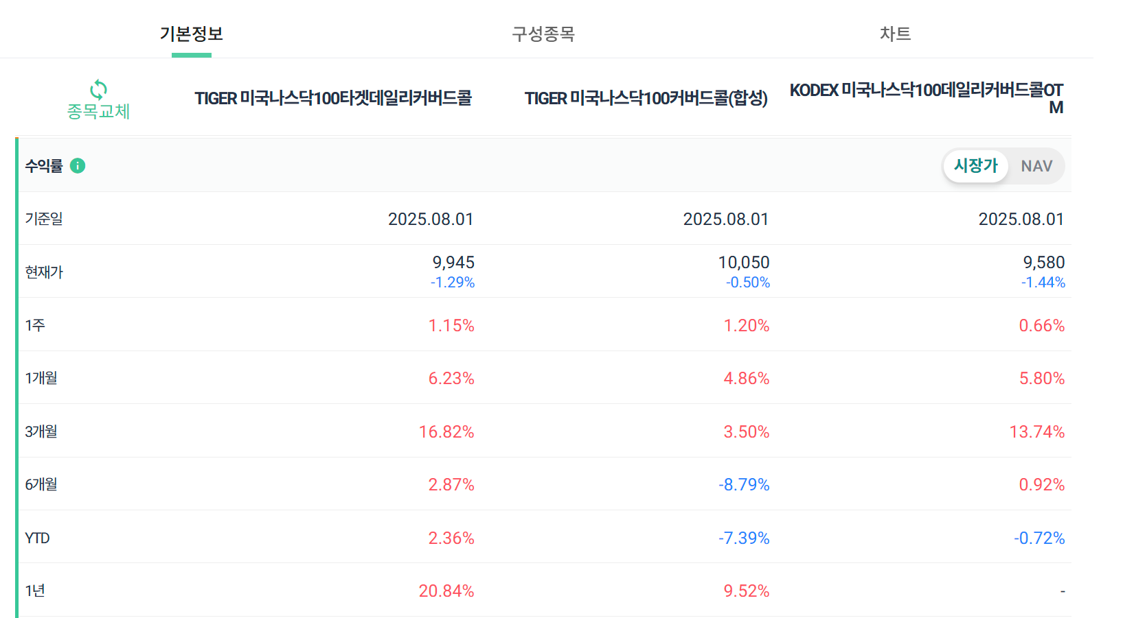 3. 수익률 비교 (2025.08.01 기준)