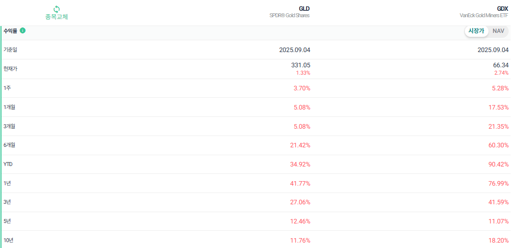 요약하면 “금 가격 + 기업 실적”이 동시에 반영되는 ETF라고 보시면 돼요.