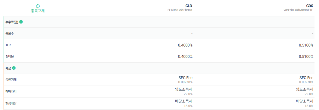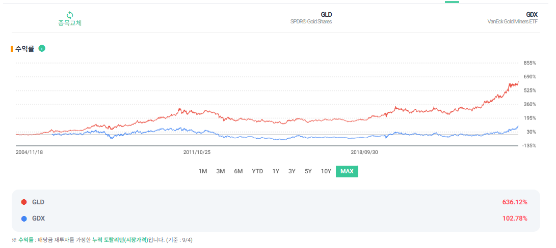 GLD는 금 그 자체에 투자를 하는 것이고,