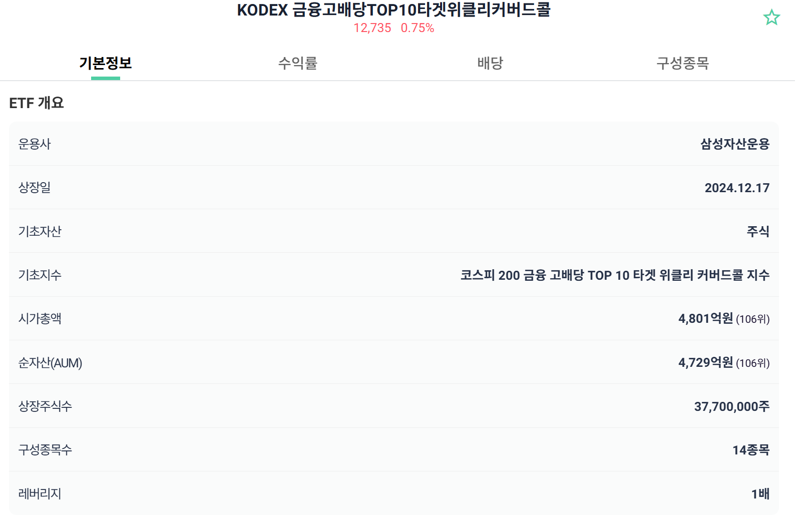 즉, 국내 금융주 배당 + 옵션 프리미엄 두 가지를 동시에 노리는 상품이라고 보면 되는데요.