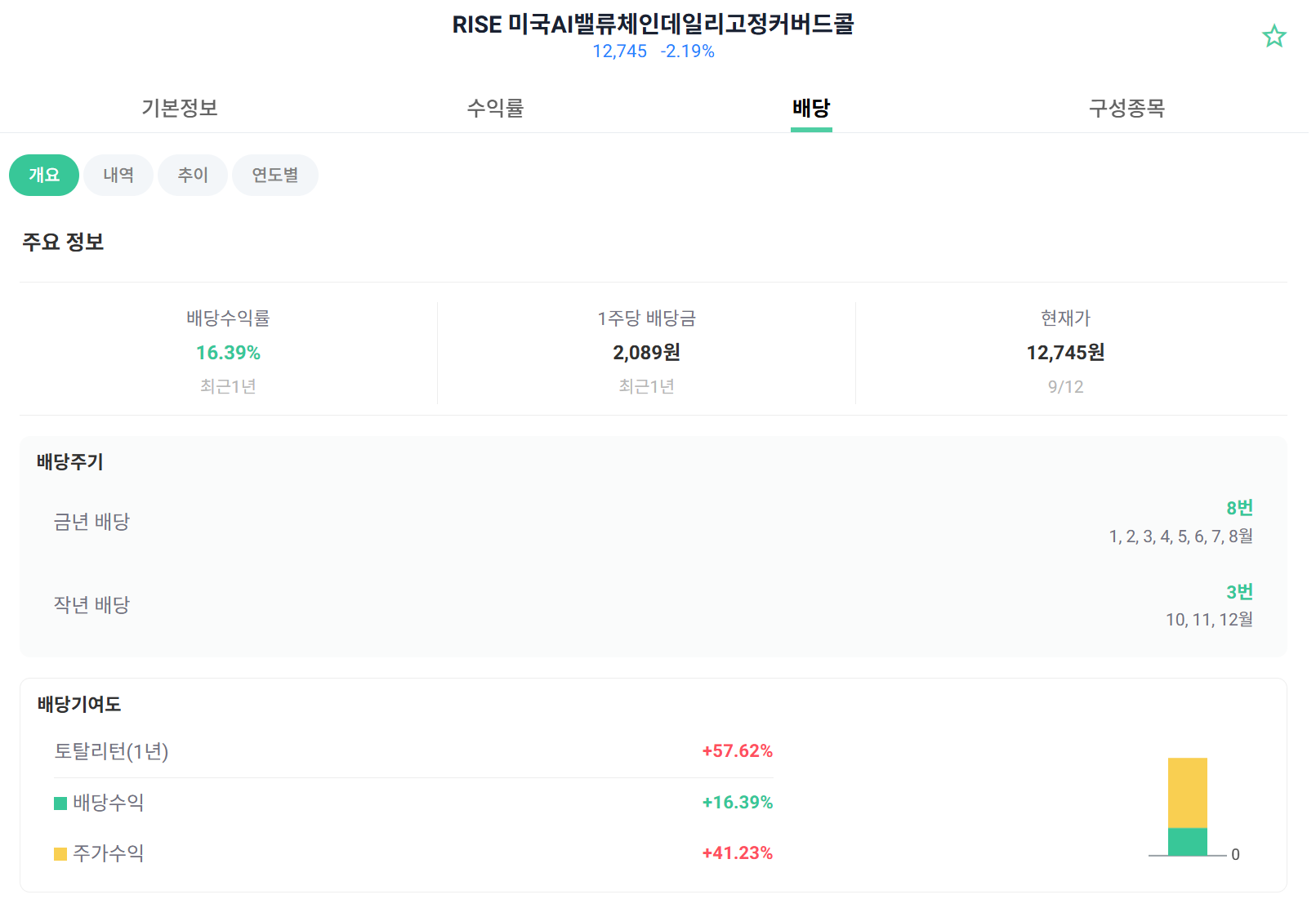 즉, 주가 상승 + 배당 두 마리 토끼를 동시에 잡았어요. 특히 급등장에서 커버드콜 ETF는 상승률이 제한되는 경우가 많은데