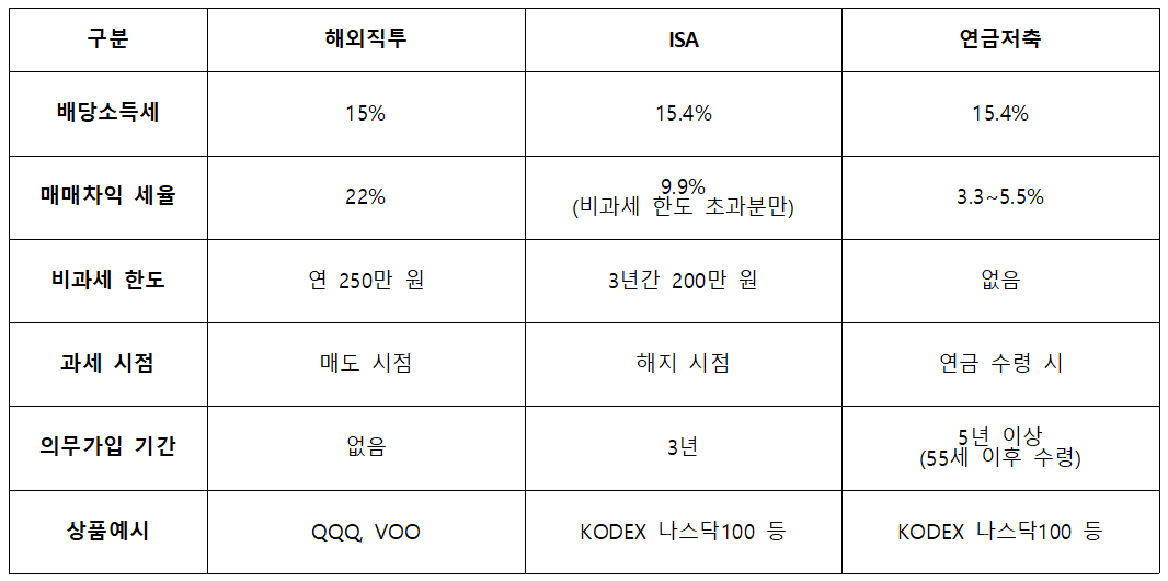 해외직투로 시작해서 3년간 250만 원 공제받아서 세금 없이 투자할 수 있어요.