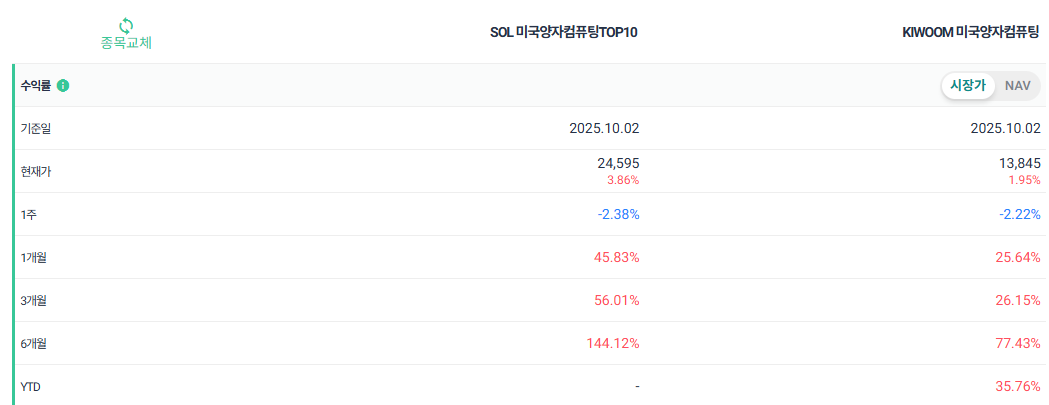 요즘 투자 키워드 중에서 가장 뜨거운 분야 중 하나가 바로 양자컴퓨팅인데요. 아직은 초기 기술 단계지만, 미래에는 인공지능, 반도체, 보안, 금융까지 엄청난 변화를 가져올 거라는 기대가 커요. 그래서 오늘은 그중에서 SOL 미국양자컴퓨팅TOP10 ETF와 KIOOM 미국양자컴퓨팅 ETF 두 가지를 비교해 볼께요.
