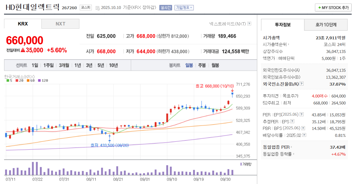 HD현대일렉트릭 역시 전력기기 분야에서 빠르게 성장 중인 기업인데요. AI 설비투자 확대에 따라 고효율 초고압 변압기 및 배전장비 수요가 크게 늘고 있답니다.