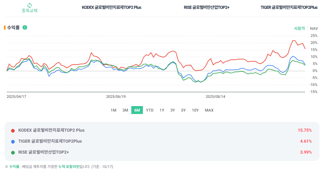 요즘 주식시장에서 비만 치료제 테마가 정말 핫하죠. 노보노디스크(NVO)나 일라이릴리(LLY) 같은 글로벌 제약사들이 주목받으면서 국내 ETF들도 이 테마를 앞다퉈 출시했는데요. 오늘은 그중 대표적인 세 가지 ETF를 비교해 볼게요.
