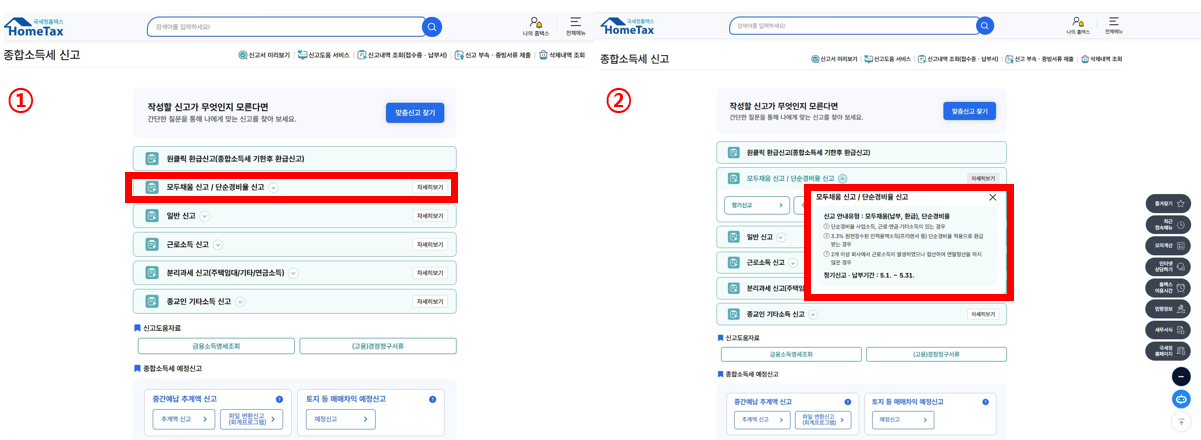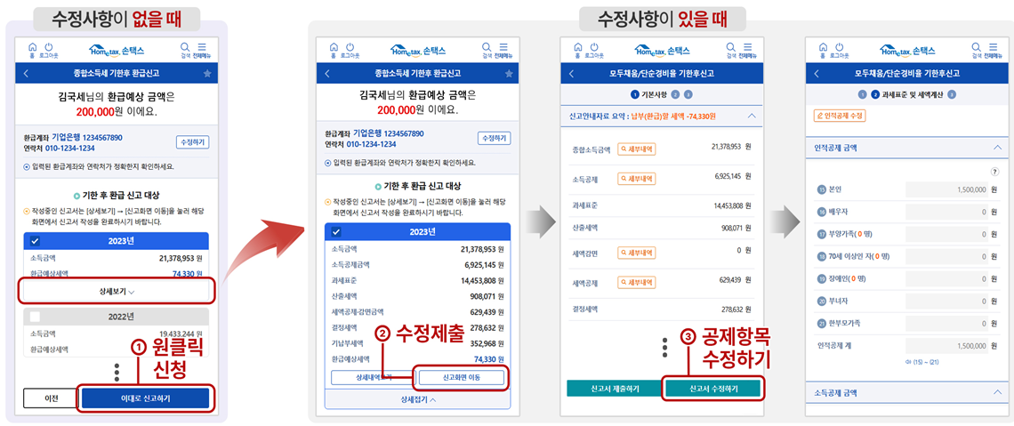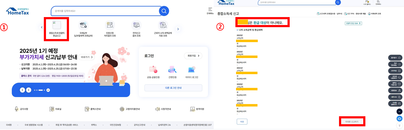 국세청 홈택스 종합소득세 원클릭 환급 신고 신청방법