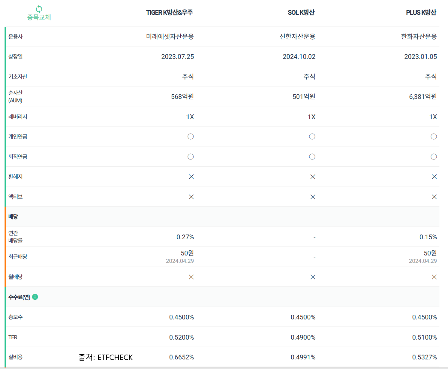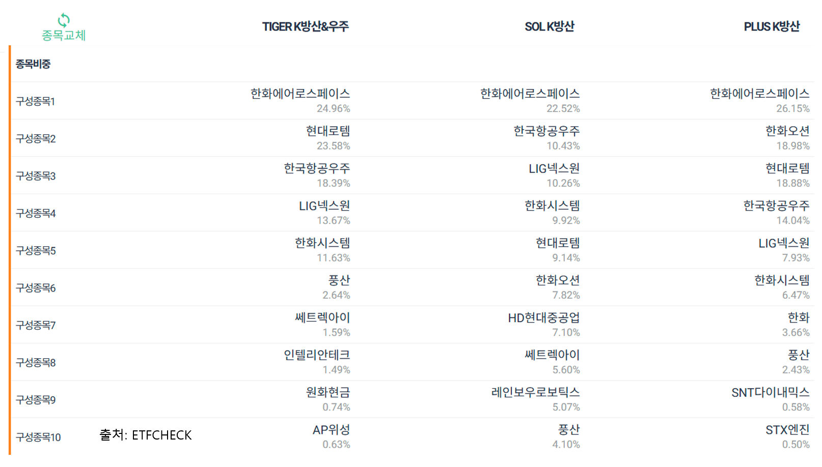 특징: 방산 및 우주항공 산업의 대표적인 기업들에 집중 투자. 안정성과 성장을 동시에 기대하는 투자자들에게 적합