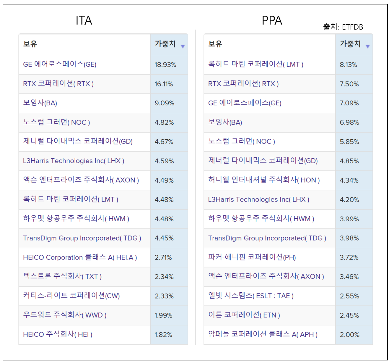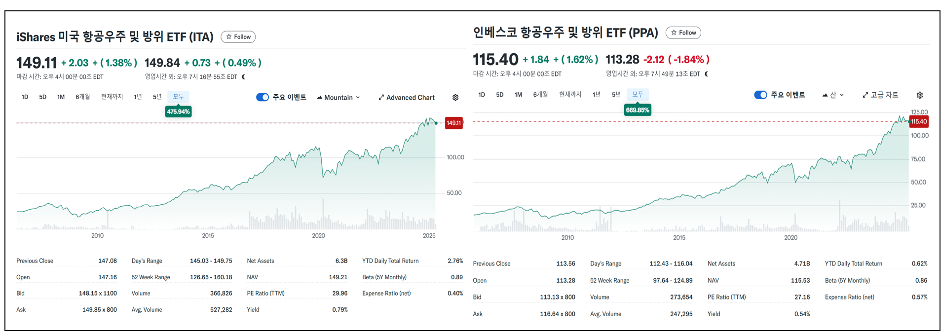 이름 | iShares 미국 항공우주 및 방위 ETF | Invesco 항공우주 및 방위 ETF |