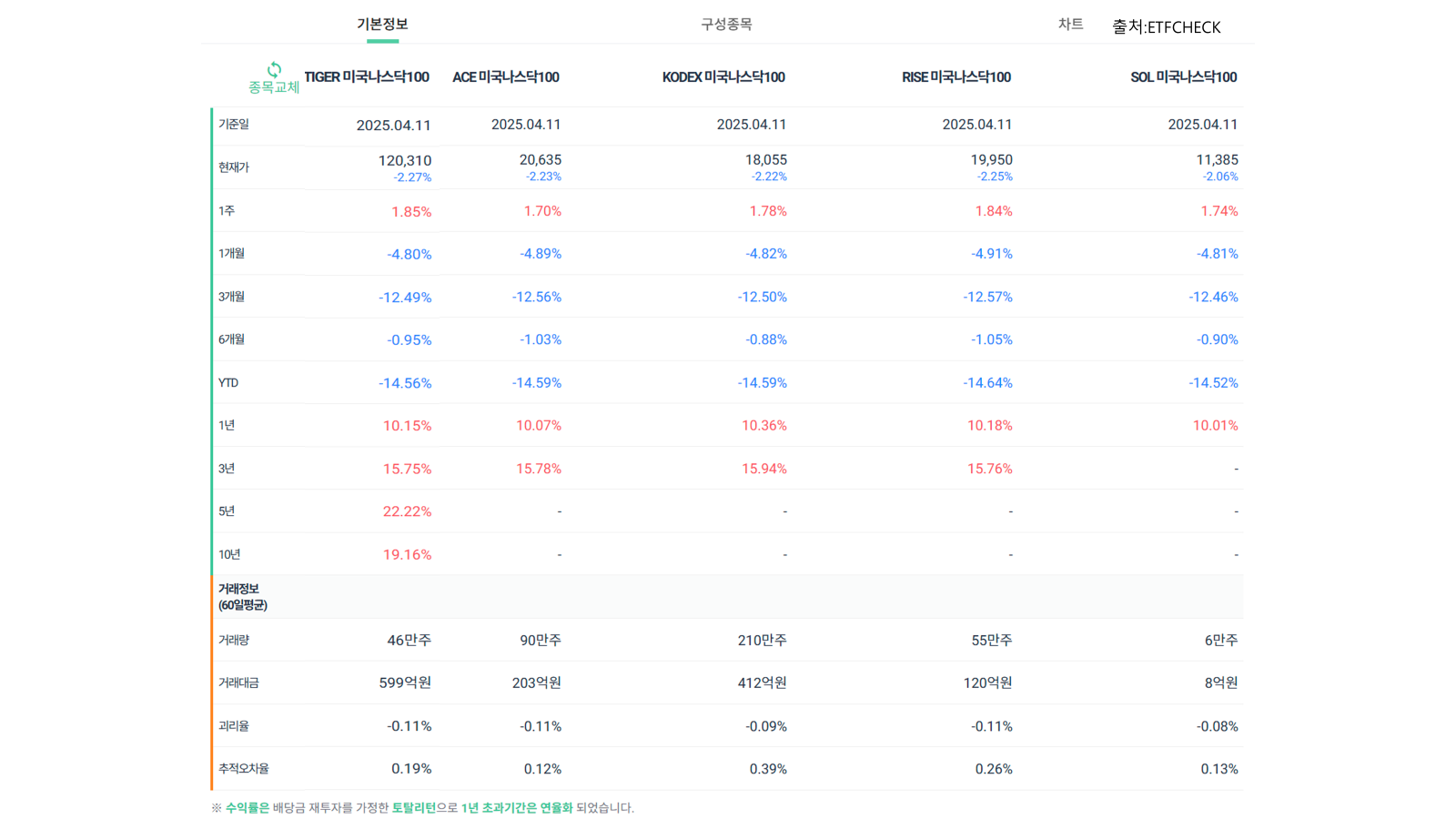 - 거래량 중시 투자자: 높은 유동성과 거래량을 선호하는 투자자에게는 TIGER 미국나스닥 100이 유리합니다.