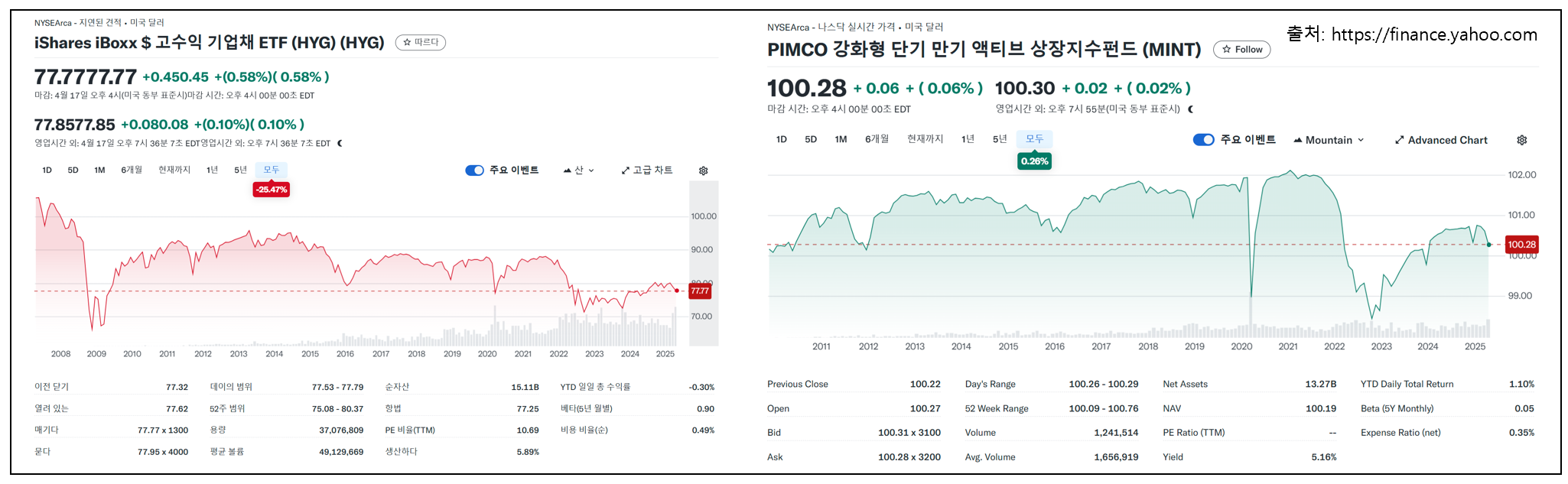 | HYG | 미국 고수익 회사채 | 0.49% | 5.89% | 채권 중심, 월배당 가능 |