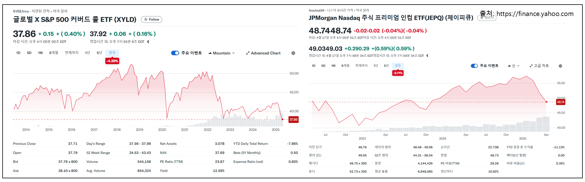 다양한 월배당 ETF 중에서도 월배당률이 많이 알려진 ETF와 커버드콜 ETF를 비교해 볼게요.