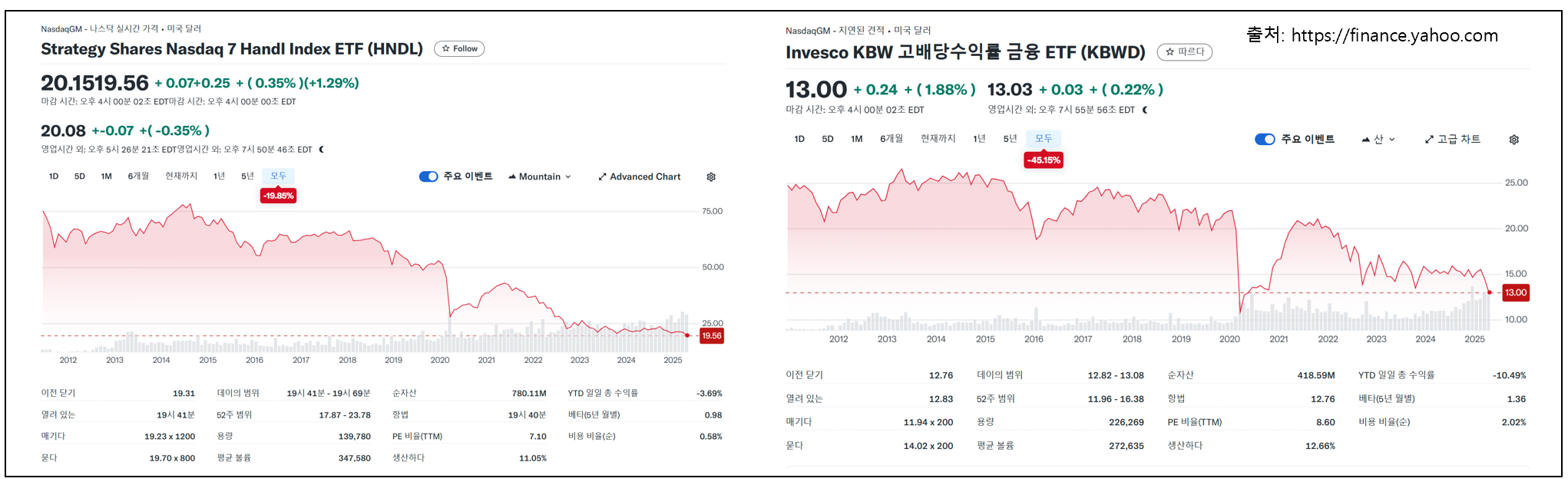 | KBWD | 미국 금융 섹터 고배당 주식 | 2.02% | 12.66% | 금융 섹터의 고배당주에 집중 투자 |