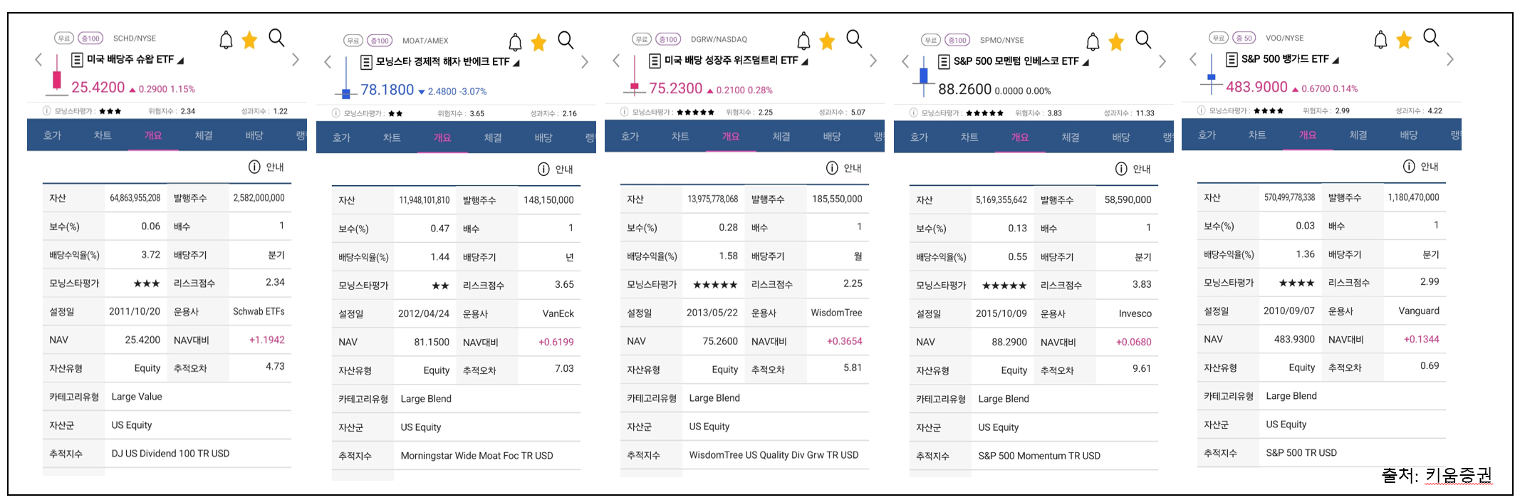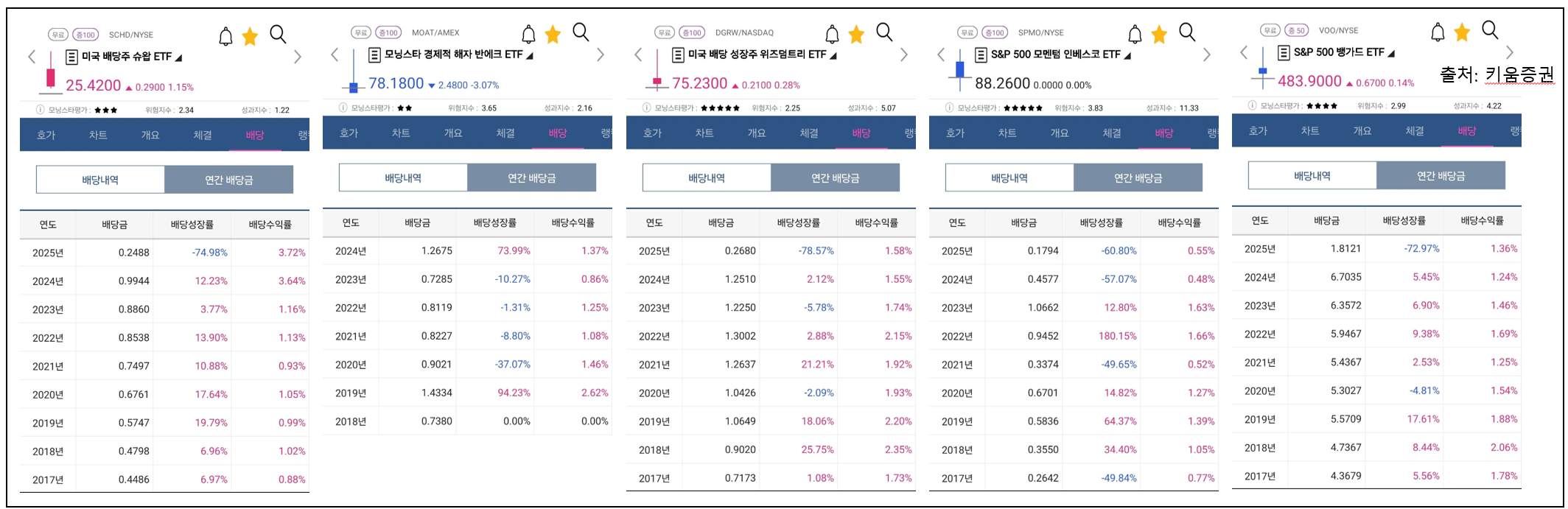 투자자가 주목하는 SCHD, MOAT, DGRW 등 ETF 5종 비교! 수익률과 배당까지 총정리