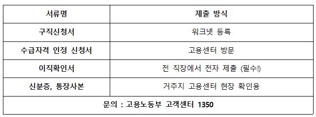 ③ 거주지 관할 고용센터 방문 후 수급자격 인정 신청서 제출