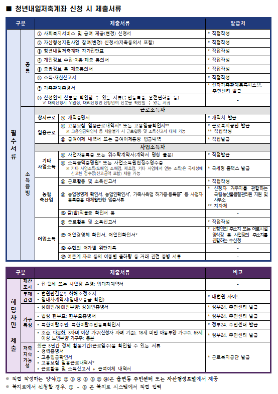 문의사항: 자산형성 지원 콜센터 1522-3690 / 복지로 상담센터 1566-0313